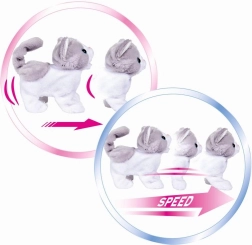 Ta sivo-bela plišasta mucka CHICHI LOVE je izjemno mehka na dotik in polna presenečenj. Zaradi interaktivnih funkcij prinaša otrokom še več veselja – zna se premikati, migati z repkom in oddajati realistične zvoke, ki igro oživijo.