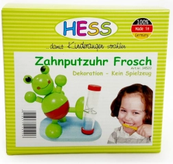 Ljubka peščena ura v obliki žabe spremeni ščetkanje zob v zabaven ritual. Dvominutni interval pomaga otrokom upoštevati priporočeni čas ščetkanja, medtem ko praktično držalo za ščetko poskrbi, da je vse na svojem mestu in pri roki.