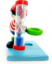 Na zabaven način motivirajte otroke k rednemu ščetkanju zob. Leseni pirat s peščeno uro z modrim peskom zanesljivo odmeri priporočeni 2 minuti, medtem ko vgrajeno držalo za zobno ščetko pomaga ohranjati red v kopalnici.