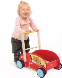 Pomagajte svojemu otroku narediti prve korake s tem edinstvenim lesenim hojčkom v obliki rdečega avtomobila, ki ima nastavljivo hitrost in tiho delovanje zahvaljujoč gumijastim kolesom, kar hkrati zagotavlja varnost in zabavo.
