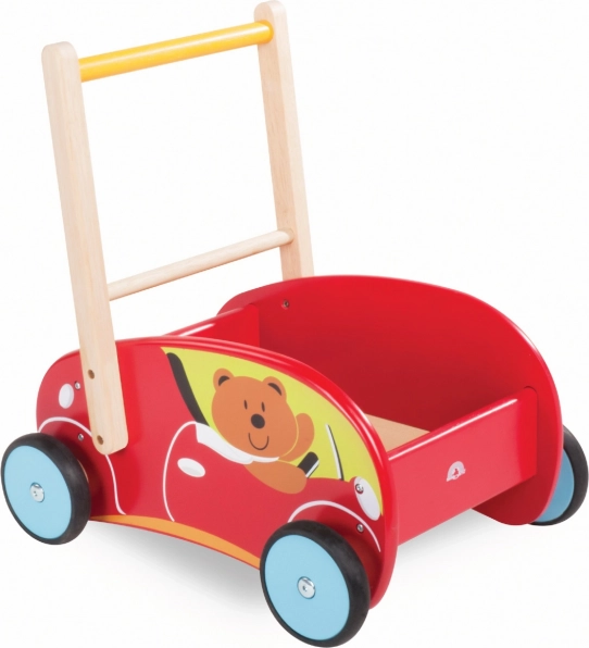 Želite, da vaš malček okrepi svojo mobilnost in se na zabaven način uči hoditi? Lesena hojica v obliki avtomobila je idealen pomočnik. Opremljena je z gumijastimi kolesi za tiho premikanje in sistemom za uravnavanje hitrosti, ki otroka ščiti pred padci. Otroci bodo našli tudi prostor za shranjevanje za svoje najljubše igrače.