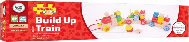 Trije speti vagončki in 28 natakljivih kock ponujajo desetine kombinacij. Otroci vadijo razvrščanje barv in oblik, fino motoriko ter domišljijo.