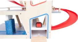 Pralnica z vrtljivimi krtačami doda igri realističnost, medtem ko gumijasta ograja v nadstropjih preprečuje izpadanje avtomobilčkov in povečuje varnost pri vožnji.