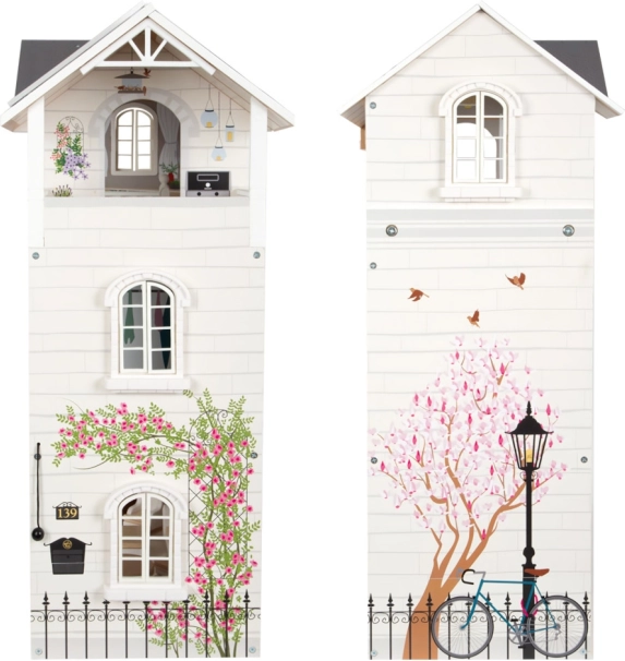 Vstopite v domišljijski svet s prostorno lutkarsko hišo, ki ponuja tri nadstropja polna zabave. Zaradi odprte sprednje strani se z njo lahko igra več otrok hkrati, kar zagotavlja neskončne ure zabave. Hiša je opremljena z udobnimi sobami, vključno z jedilnico, dnevno sobo, otroško sobo, kopalnico in spalnico.