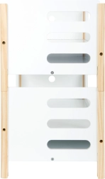 Ta kakovostna lesena posteljica za punčke v sodobnem nordijskem slogu otrokom prinaša ure ustvarjalne igre. Zahvaljujoč premišljeni konstrukciji jo zlahka sestavite kot dve enojni postelji ali kot pograd, pri čemer se ob zlaganju na eni strani ustvari lestev. Vidni les, gladke površine in zaobljeni robovi zagotavljajo privlačen videz in varno uporabo.
