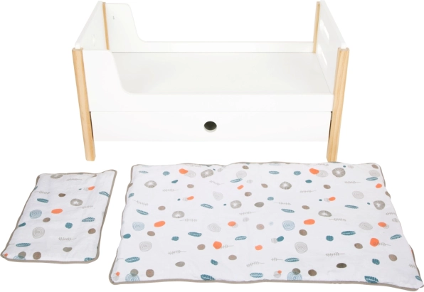 Predalčki pod posteljami poskrbijo za red med dodatki, medtem ko spolno nevtralna posteljnina in prevelike odeje ustrezajo punčkam do 46 cm.