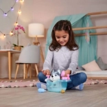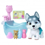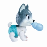 Kužek Husky ima interaktivno funkcijo pitja in lulanja, kar otroke nauči skrbi za domače ljubljenčke in doda igri dodatno dimenzijo.