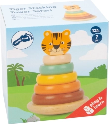Ta impresivni nasadni stolp s tigrovim motivom je ne le lepa igrača, ampak tudi odlično orodje za razvoj otrokovih spretnosti. Sestavljen je iz 7 delov, vključno z osnovo in šestimi barvnimi obročki, ki jih je mogoče nasaditi na palico z zaključno tigrovo glavo. Na ta način otroci trenirajo koordinacijo oko-roka in razumevanje oblik.