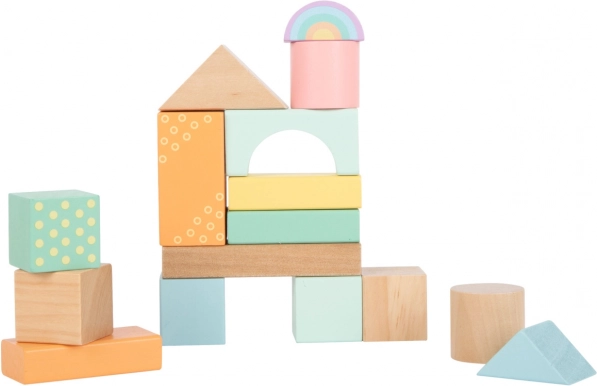 Odkrijte brezčasne lesene kocke v moderni pastelni izvedbi. Raznolike oblike in velikosti spodbujajo otroke k gradnji stolpov, mostov in fantazijskih stvaritev, pri čemer naravno razvijajo koordinacijo oko–roka, potrpežljivost in logično mišljenje. Kakovosten les in gladki robovi zagotavljajo prijeten in varen oprijem tudi za najmlajše.