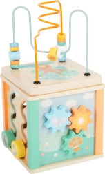 Ta lesena motorična kocka v sodobnih pastelnih barvah iz linije »Pastel« navdušuje z visokim deležem lesa, prikupnimi živalskimi motivi in skrbno izdelavo. Otroci se lahko igrajo z vseh petih strani ter naravno urijo koordinacijo oko–roka, potrpežljivost in prostorsko predstavo.