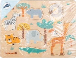 Lesene vstavljanke safari znamke small foot so idealna prva sestavljanka za male raziskovalce. Vsak košček predstavlja žival s savane in natančno sede v izrezano mesto, kar podpira pravilno koordinacijo oko–roka ter prostorsko predstavo.