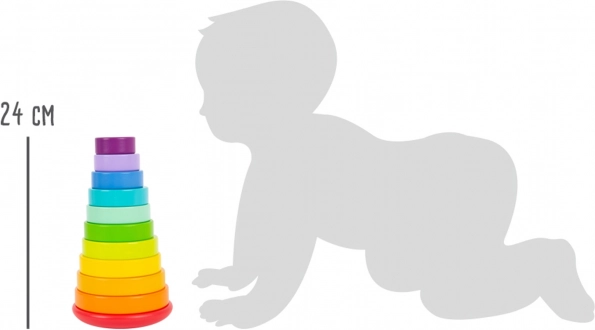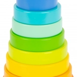 Poleg tega ima stolp zaobljeno osnovo, zato se med zlaganjem ziblje, kar dodaja k zabavi. Barvit dizajn podpira prepoznavanje barv in oblik, pa tudi različnih velikosti.