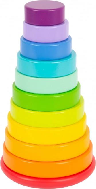 Ta velik lesen vstavljivi stolp je popoln način, kako zaposliti otroke in hkrati spodbujati njihove spretnosti. Leseni koluti različnih velikosti se zlagajo na osnovo s palico, kar zahteva, da otroci diske obračajo zaradi majhnih izboklin na palici. Ta proces ne le izboljšuje fino motoriko, temveč razvija tudi njihovo logično razmišljanje.