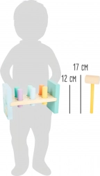Ta igrača je zasnovana za razvoj fine motorike in koordinacije oko-roka pri otrocih. Barviti zatiči in majhno kladivo motivirajo otroke h igranju in izboljšujejo njihovo moč in koordinacijo.
