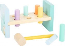 Odkrijte čar tradicionalne igrače v modernem slogu. Naša tolkalka v nežnih pastelnih barvah je idealna za otroke, ki si želijo preizkusiti svojo moč in hkrati izboljšati svojo motoriko. Ilustracije živali dodajo tej igrački edinstven videz. Po zabavnem zabijanju vseh zatičev lahko igračo enostavno obrnete in začnete znova.