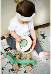 Predstavljamo vam ljubkega lesenega polža na vrvici, ki ne le zabava, ampak tudi pomaga pri razvoju vašega otroka. Zaradi svoje lahkosti in enostavno vrtečih se koles je idealen za otroke, ki se začenjajo učiti hoditi, in podpira njihovo koordinacijo in ravnotežje. Polž poleg tega služi kot sortirka s petimi različnimi oblikami, kar spodbuja kognitivne sposobnosti in fino motoriko.
