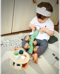 Vsebuje pet različnih oblik za razvrščanje, ki podpirajo kognitivni razvoj in fino motoriko otrok.