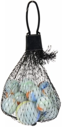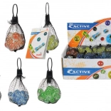 Steklene kroglice v mrežici so na voljo v šestih različnih barvnih variantah, ki dodajo lepoto in igrivost vsaki sobi. Pakiranje vsebuje 20 kroglic s premerom 16 mm in 1 večjo kroglico s premerom 25 mm, kar omogoča različne igralne možnosti in dekorativno uporabo.