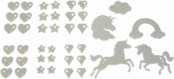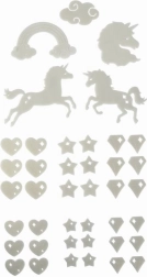 V hipu ustvarite čarobno vzdušje. Set fluorescenčnih dekoracij z motivom samoroga po osvetlitvi z lučjo nežno sveti v temi in vsako otroško sobo spremeni v pravljično kraljestvo. Elemente preprosto pritrdite z lepilno gumo, ki je priložena v pakiranju.