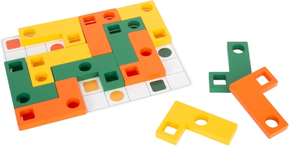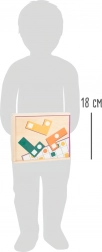 Ta lesena logična igra SMALL FOOT ponuja otrokom zabavne izzive in pametno učenje. Koščki z različnimi odprtinami se polagajo na igralne kartice po predlogah, zato otroci urijo natančnost, potrpežljivost in strategijo sestavljanja. Zaradi živih barv in oblik je igra privlačna in enostavno razumljiva.
