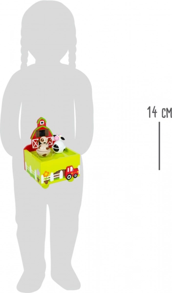 Prisrčna glasbena skrinjica z motivom kmetije znamke small foot otrokom prinaša mirno uspavanje. Ob melodiji pesmi »Striček Donald je imel kmetijo« se figurici krave in kužka nežno vrtita. Zahvaljujoč kakovostnemu lesu, vzdržljivi izdelavi in navijalnemu mehanizmu je to čudovit dodatek vsake otroške sobe.