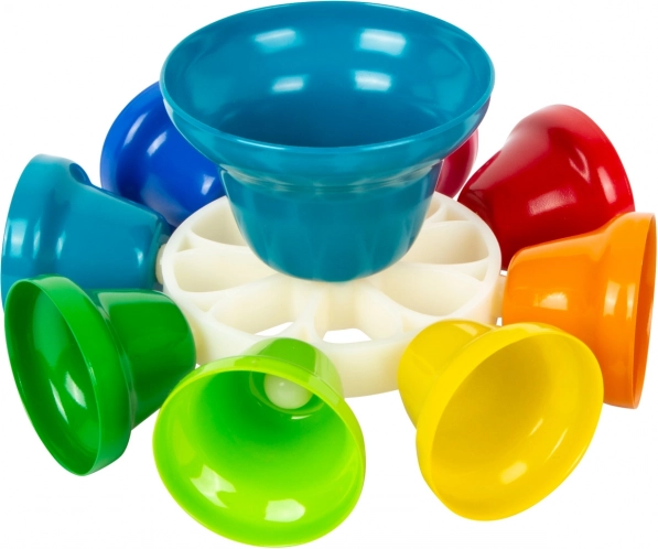 Ta kakovosten glasbeni komplet znamke small foot je idealen za prvi stik z melodijo in ritmom. Vsak od 8 barvnih zvončkov je uglašen na drugo noto, zato otroci zlahka razlikujejo višino tonov in lahko zaigrajo preproste pesmi po barvah.