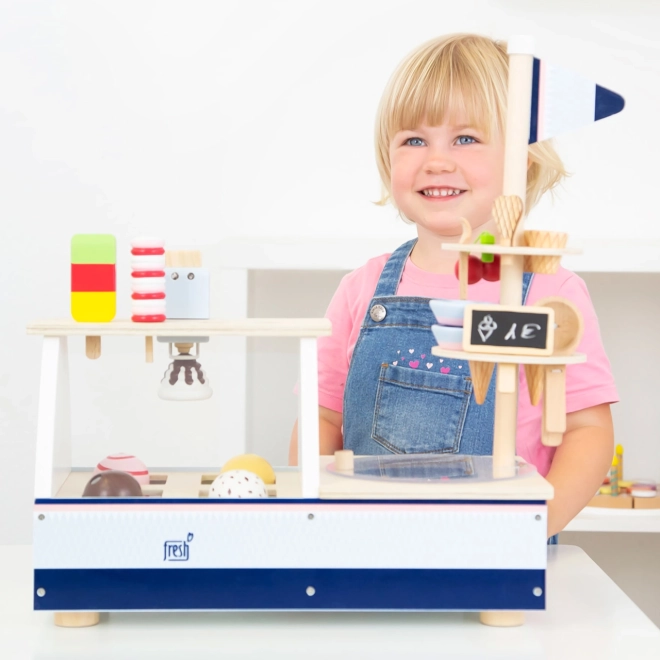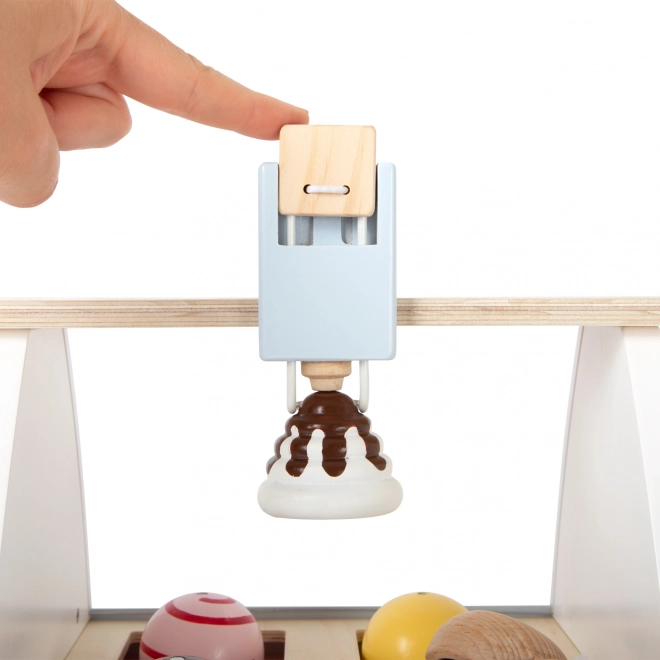 Prihaja stojnica za sladoled Small Foot, idealna za zabavno poletno in zimsko igro. Ta leseni komplet bodo vaši otroci vzljubili zaradi širokega izbora slaščic in prilagodljive zasnove.