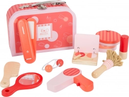 Ta kozmetični kovček za otroke znamke Small Foot je idealen za male umetnike, ki radi igrajo vloge in se želijo počutiti kot odrasli. Set vsebuje 10 različnih kozmetičnih pripomočkov izdelanih iz kakovostnega lesa.