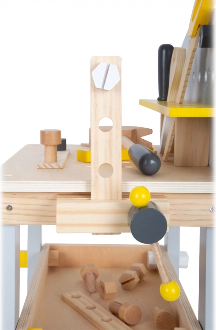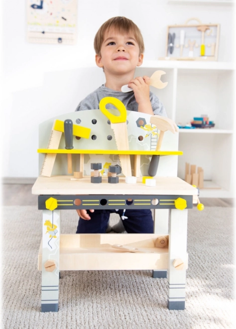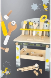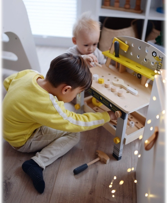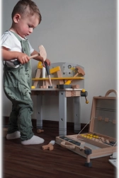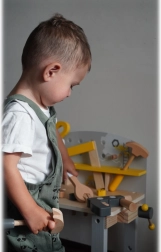 Zaradi realistične zasnove miza omogoča otrokom izkusiti občutek prave delavnice in razvijati ustvarjalnost ter motorične spretnosti.