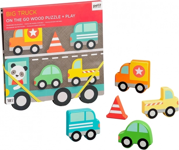 Robustne lesene puzzle za malčke z motivom velikega tovornjaka. Zabavna igrača, ki razvija motorične spretnosti in kreativno razmišljanje otrok.