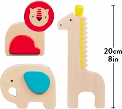S to veselo živalsko druščino bodo otroci spoznavali prve ritme in zvoke. Žirafin guiro s strgalom ustvarja značilne šumeče tone, dve rumba krogli v podobi slona in leva pa lepo podpirata ritem. Komplet je odličen za skupno igranje, razvoj koordinacije roka–oko in naravno doživljanje glasbe.