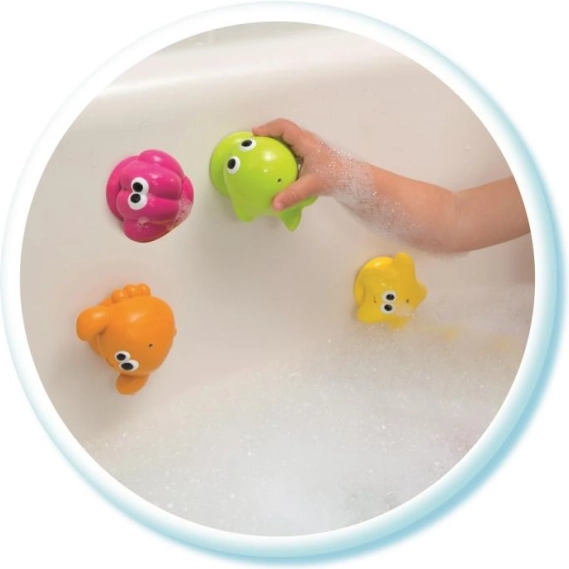 Živalice so v živahnih barvah in pritegnejo pozornost otrok med kopanjem, hkrati pa spodbujajo njihovo domišljijo.