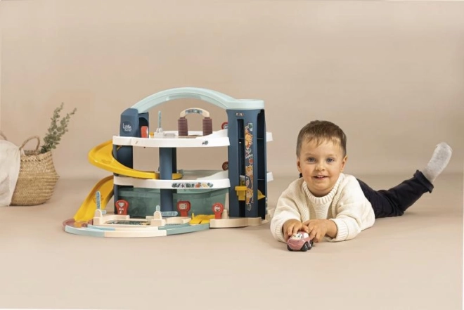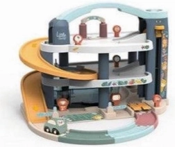 Izdelek je estetsko oblikovan za otroke od 18 mesecev in je popolno darilo za vsakega malega avtomobilskega navdušenca. Dimenzije garaže so 62x60x43 cm, kar zagotavlja velik prostor za igro in razvoj motoričnih sposobnosti otrok.