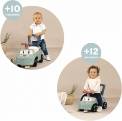 Lahko in stabilno ergonomsko otroško poganjalce z nedrsečim volanom zagotavlja dober oprijem tudi pri hitrejši vožnji. Zaradi stabilne konstrukcije vozilo zagotavlja varno uživanje v vožnji tako znotraj kot zunaj. Pametna zasnova ponuja oporo za hrbet, ki jo lahko enostavno primete. Tako se lahko urijo prvi koraki pri potiskanju avta. Del opreme je shranjevalni prostor pod sedežem. Nizka višina sedeža olajša vstopanje in izstopanje. Prednji in zadnji odbijači zagotavljajo dodatno stabilnost. Dimenzije izdelka (D x Š x V): 54 x 27 x 40 cm.