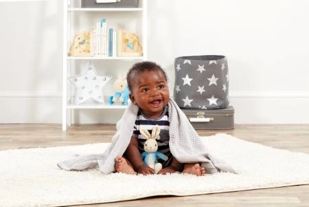 Pletena odejica iz čistega bombaža je nežna do dojenčkove kože, zračna in pralna v pralnem stroju za enostavno nego.