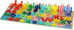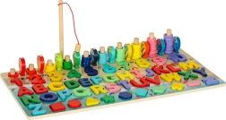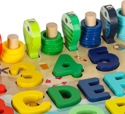 Ta ustvarjalni didaktični komplet ponuja otrokom številne načine učenja skozi igro. S sortirnikom si vadijo prepoznavanje oblik, števil in črk, z abacusom osvojijo osnove računanja, z magnetno ribiško palico pa uživajo v zabavnem lovljenju ribic, ki krepi koordinacijo oko–roka.