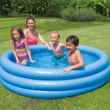 Napihljiv bazen Intex Crystal Blue je odlična izbira za vroče dni na vrtu. Zaradi trikrožne konstrukcije je stabilen in udoben, namestitev pa je stvar nekaj minut – le razgrnite ga na raven teren, napihnite in napolnite z vodo. Kakovosten vinil z debelino sten 0,23 mm in dna 0,18 mm zagotavlja vzdržljivost in dolgo življenjsko dobo.