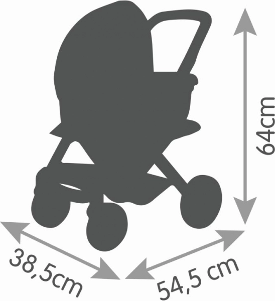 Robustne prevleke iz plastične tkanine so trpežne in enostavne za vzdrževanje – dovolj je, da jih obrišete z vlažno krpo. Vrtljiva sprednja kolesa in protihrupna plast na kolesih poskrbijo za gladko, tiho in stabilno gibanje doma in na prostem. Primerno za punčke do 42 cm (punčka ni priložena).