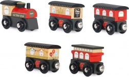 Lokomotiva in pet vagonov se zlahka povežejo zahvaljujoč vgrajenim magnetom – idealno za majhne roke in brezskrbno igranje.