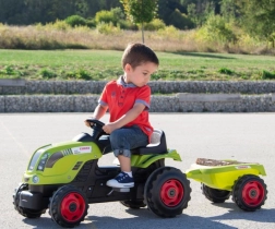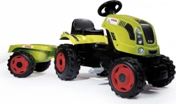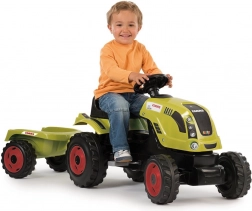 Otroški poganjalni traktor CLAAS z zelenim snemljivim prikolnikom je odlična izbira za pustolovščine na prostem. Ponuja nastavljiv sedež glede na otrokovo višino, hupo na volanu za več zabave in odpirajoč se pokrov motorja za realistično igro. Izdelan je iz vzdržljive kakovostne plastike za dolgo življenjsko dobo.