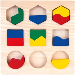 Vsak košček se prilega svojemu mestu, otroci pa si naravno osvojijo prepoznavanje oblik in barv ter razvijajo koordinacijo oko–roka.