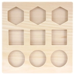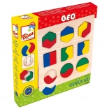 Lesene sestavljanke Bino z geometrijskimi oblikami so idealen pripomoček za otroke od 3 let dalje. Zahvaljujoč 18 barvnim koščkom in trdni podlagi se otroci naučijo pravilno ujemati oblike, razlikovati barve ter vaditi koordinacijo oko–roka. Kakovostna lesena izdelava zagotavlja vzdržljivost in prijeten dotik naravnega materiala.