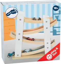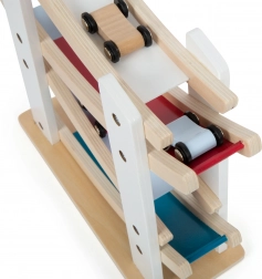Ta čudovita lesena dirkalna steza je idealna za male motoriste. Zahvaljujoč štirim avtomobilčkom, ki se lahko strmo spuščajo po rampi, je igra polna dinamike in zabave. Izdelana je iz kakovostnega naravnega lesa v kombinaciji z barvnimi poudarki, ponuja estetski videz in hkrati podpira razvoj otrokove motorike.