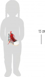Lesena igrača z motivom čevlja, ki otroke uči, kako pravilno zavezati vezalke, izboljšuje njihove motorične spretnosti ter nudi veliko zabave.