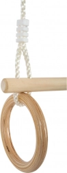 Ta lesena droga z gimnastičnimi obroči omogoča raznoliko telesno vadbo in je primerna za otroke od 3 let. Robustna konstrukcija in nastavljiva dolžina vrvi zagotavljata varnost in prilagodljivost.