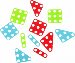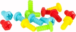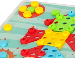 Velik komplet barvitih vijakov, ploščic in oblikovanih delov prebudi ustvarjalnost in spodbuja samostojno ustvarjanje mozaikov in modelov.