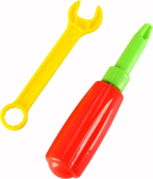 Otroci lahko vijakajo kot pravi mojstri zahvaljujoč varnemu baterijskemu vrtalniku, izvijaču in ključu – odlično za urjenje motorike.