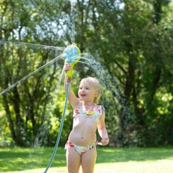 Otroci obožujejo preživljanje časa na prostem, ta vrtni vodni razpršilnik pa jim bo zagotovil ure zabave. Lahko ga postavite na tla, držite v roki ali pritrdite na vrtno hiško. Razpršilnik ponuja dva načina razprševanja vode – stalni in vrteči se, med katerima lahko preklapljate s posebnim gumbom.