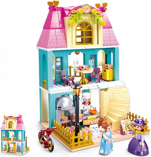 Ta gradbeni komplet Sluban Dekliške Sanje ponuja čudovito dvonadstropno hišo z omandjem, ki bo zagotovila ure zabave in kreativnega sestavljanja. Kombinabilnost z drugimi kompleti je njena velika prednost: