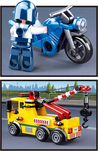 Gradbeni set Sluban Town prinaša akcijski vlečni tovornjak z motociklom za otroke od 6 let. Vsebuje 205 kosov in 2 figurki z gibljivimi deli, izdelan je iz trpežne plastike ABS, ima srednjo zahtevnost in je združljiv z LEGO, Cobi in Mega Bloks.